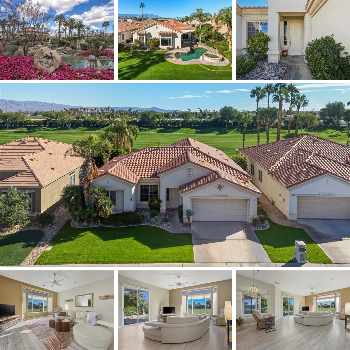 Beautiful golf-course home with stunning views! This 3-bedroom, 2-bathroom residence offers 2,079 sq ft of sophisticated desert living in the highly sought-after 55+ resort community of Heritage Palms Country Club. Perfectly positioned on the 12th fairway, the home captures sweeping golf course vistas framed by breathtaking mountain backdrops. Step inside to a bright, open layout featuring a formal sitting area and dining room. The kitchen overlooks the great room & dining area, creating an inviting space ideal for entertaining. The spacious primary suite offers private patio access and a spa-like bathroom with a soaking tub, walk-in shower, and dual vanities. Guest bedrooms are generously sized, providing comfort and privacy for visitors. Enjoy the best of indoor-outdoor living with your sparkling pool and spa, all set against panoramic mountain and fairway views—an entertainer's dream! As a resident of Heritage Palms, you'll enjoy world-class amenities including an 18-hole championship golf course, tennis and pickleball courts, indoor and outdoor pools and spas, a state-of-the-art fitness center, grill room, billiards, card rooms, and vibrant social clubs. Don't miss your chance to experience effortless, resort-style living in the heart of the Coachella Valley!
